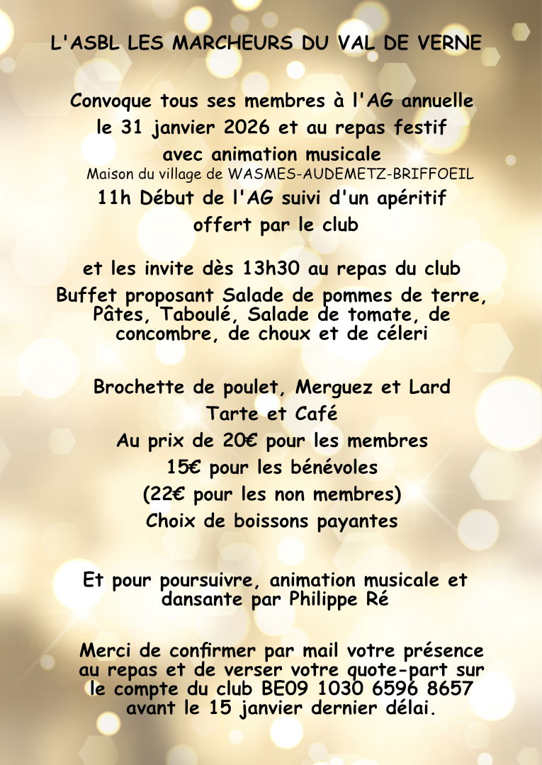 Nous vous attendons nombreux pour festoyer ensemble et détailler nos projets 2026, à l'occasion du cinquantième anniversaire de notre club.