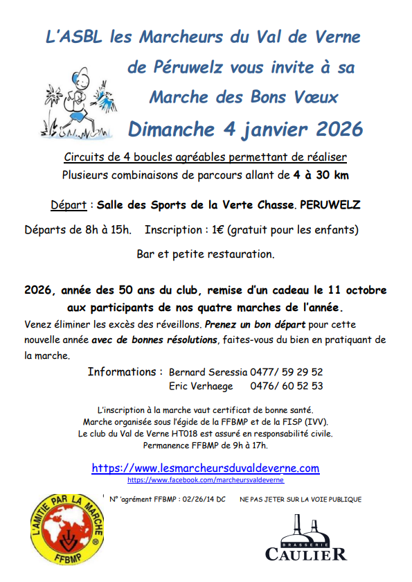 La prochaine marche fédérale organisée par le Val de Verne aura lieu le dimanche 4 janvier 2026 dès 8h00.